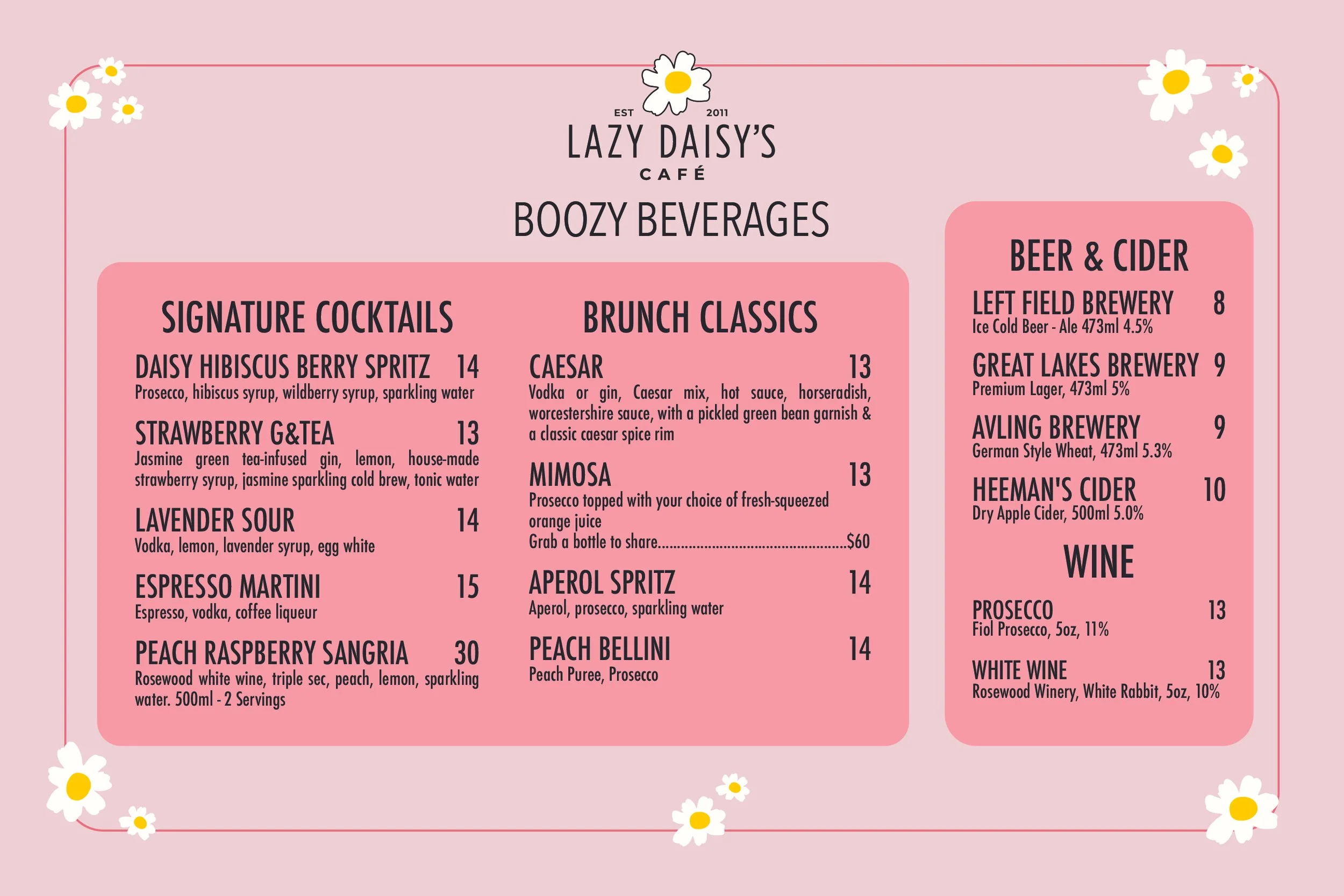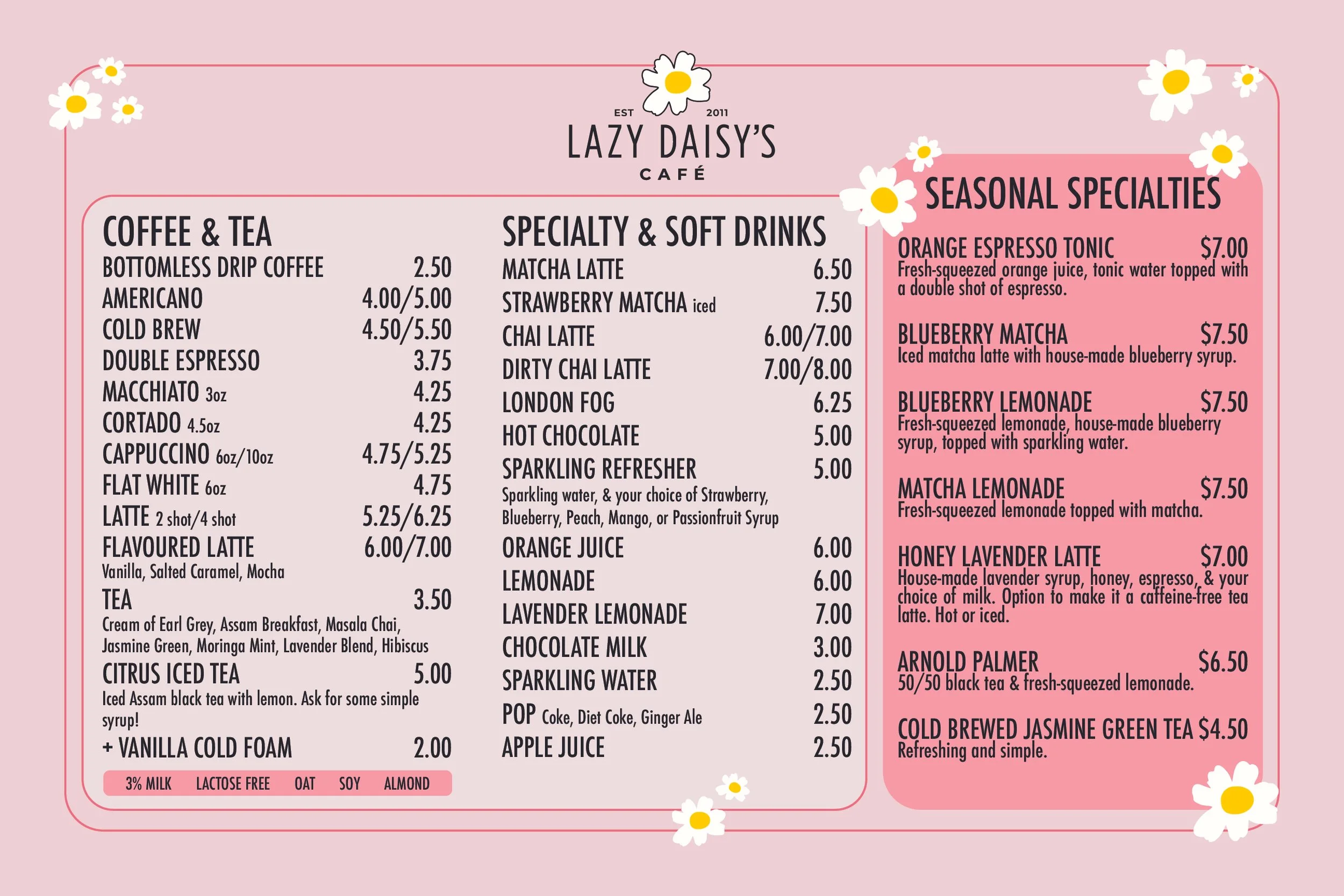 LAZY DAISY’S BREAKFAST & BRUNCH MENU